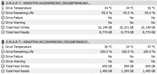 Однако, если рассматривать текущую ценовую политику на накопители NV1 250GB и KC2500 250GB и нужны только такие варианты, то лучше взять KC2500. Разница в цене минимально, эфемерный ресурс выше, темперуты хорошие. В общем и целом, если получится уцепить за недорого - стоит брать.