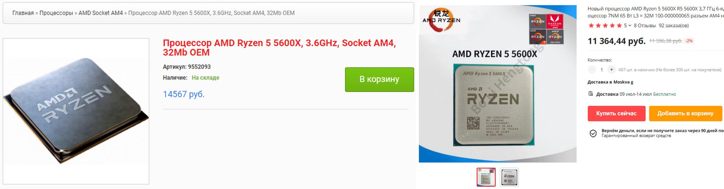 Народный шестиядерник, но уже в исполнении AMD. Ryzen 5 5600X без лишних слов. Разница с Aliexpress - более 3000 руб.