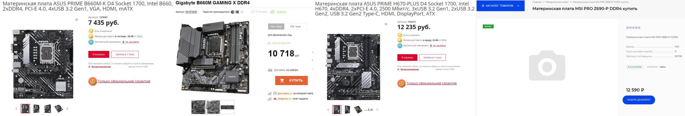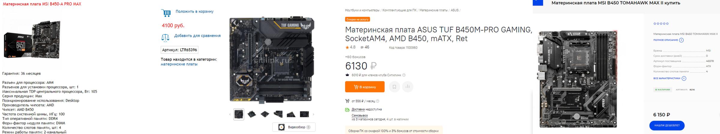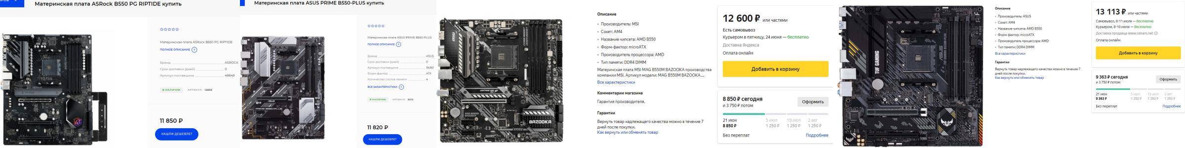 Далее посмотрим на более предпочтительные варианты на B550. И вот здесь пришлось поискать подольше. Разница в ценах большая между площадками, в наличии плат мало: