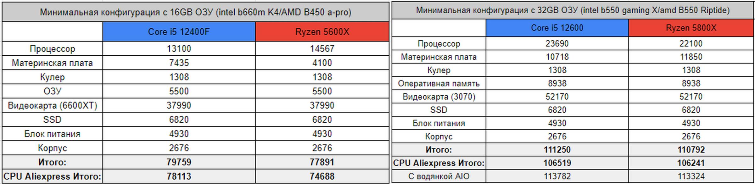 Подсчитаем во что обойдутся данные сборки с учетом заказа CPU с Aliexpress, также с разными видеокартами.