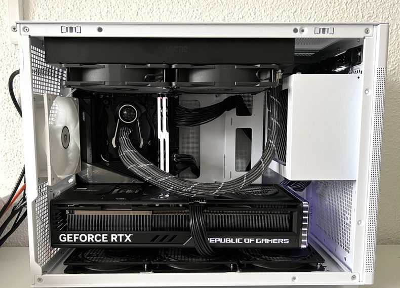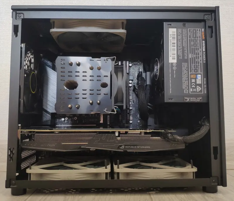 С первым произведенным корпусом такого типа Asus влетает с ноги и дает прикурить почти всем корпусам подобного типа. Каретка блока питания может быть смещена в 3 положения, что позволяет поставить трехсекционную воду (естественно при использовании SFX БП). Любые башни по высоте, видеокарты до 335 мм, достаточное место под кабель-менеджмент. Тесты температур по многочисленным обзорам идут наравне с полноформатными лидерами за счет меш-панелей и грамотного расположения компонентов. Тут даже и нечего добавить. Внешний вид может показаться кому-то спорным. И да, RTX 4000 сюда отлично лезет. Как Вы могли и предположить - есть отталкивающие факторы. Это цена и наличие. Найти можно на озоне, у казахов. На вайлдберриз были, но их разобрали даже по цене в 10000 руб.