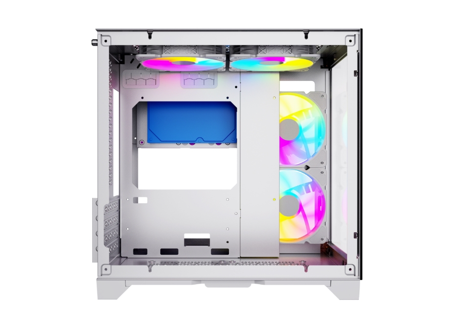 Модный нынче представитель корпусов, где есть разделение на секции - система\ блок питания, кулеры или водянка. Макс. высота процессорного кулера 140 мм, Макс. длина видеокарты 320 мм, длина блока питания - неограничена. Практически полная калька с корпусов Lian Li, однако чудес не бывает. Мы получаем тонкий металл фольгу, отсутствие ребер жесткости в местах, где они быть должны. Максимум двухсекционка, но хотя бы варианты установки есть наверх или сбоку, что уже неплохо. Однако, только 140 мм процессорному кулеру. Тут производитель сам принуждает Вас поставить воду. 4 вентилятора в комплекте - очень неплохо, но про их качество вы наверняка в курсе - это хлам. Нет крепления под вентиляторы - привет колхоз и использование стяжек, что в принципе не страшно.