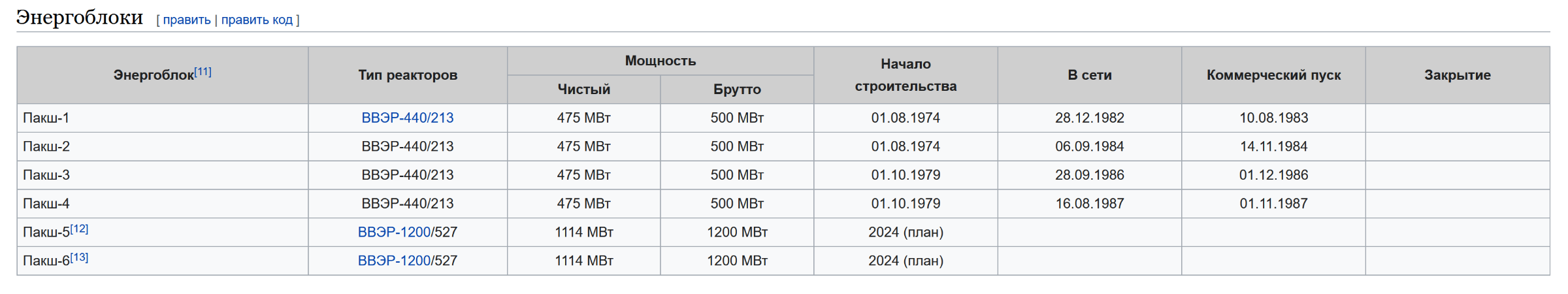 Краткая информация по энергоблокам АЭС «Пакш». А 5 и 6 энергоблоки относятся к проекту «Пакш-2».