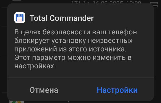 В целях безопасности смартфоны и планшеты будут блокировать установку приложений из неизвестных источников. Поэтому во всплывающем окне заходим в меню «Настройки». Я заходил в папку Download через приложение Total Commander и меня уведомляло оно.