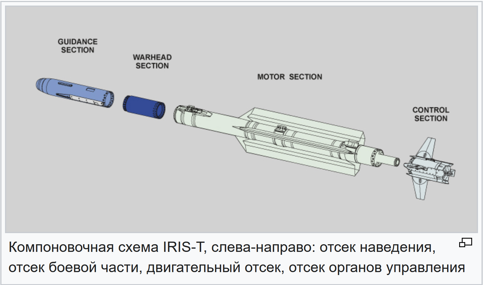IRIS-T (Infra Red Imaging System Tail/Thrust Vector-Controlled) представляет собой ракету класса «воздух-воздух» малой дальности, имеет на борту охлаждаемую инфракрасную головку самонаведения. Разрабатывалась 6 странами под руководством Германии, предназначалась для замены устаревшей AIM-9 Sidewinder (американская управляемая ракета «воздух—воздух» с инфракрасной головкой самонаведения, принятая на вооружение в 1956 году). Интересно, что IRIS-T конструкцию и компоновку практически переняла от японской ракеты Тип 04 AAM-5, производства Mitsubishi Heavy Industries.