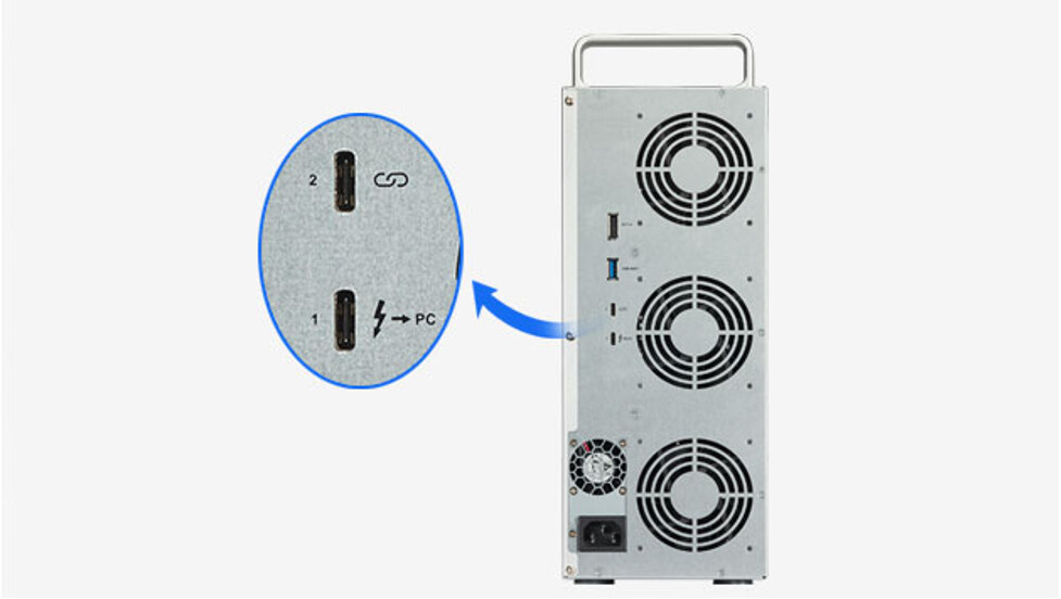 TerraMaster D8-332 оснащен новейшим специализированным чипом RAID и высокоскоростной кэш-памятью, для выполнения всей обработки RAID. Хранилище отлично подходит для видеоредакторов, работающих с многоканальными видеопотоками HD и 4K и 8K в реальном времени. Используя пару интерфейсов Thunderbolt 3 (40 Гбит/с) и аппаратный RAID-контроллер, D8-332 может работать со скоростью передачи 1600 МБ/с в RAID 0 с 8 твердотельными накопителями. Порт Thunderbolt 3 D8-332 также совместим с устройствами последнего поколения с поддержкой Thunderbolt 4.
