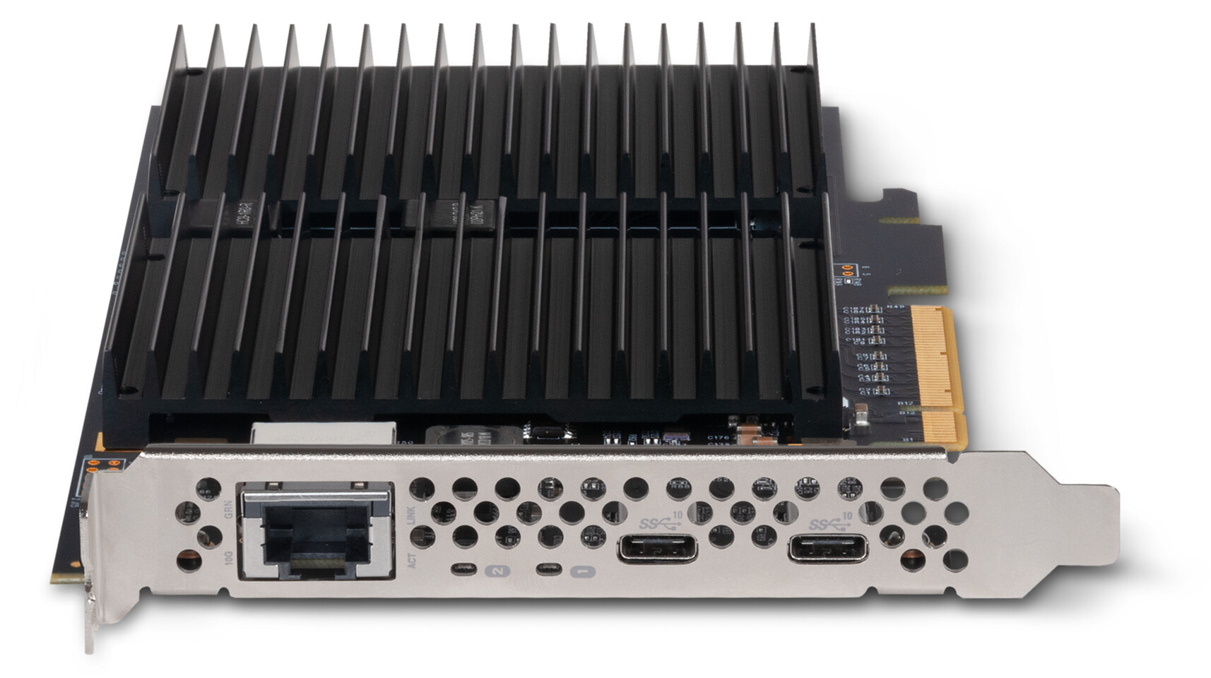 В новинку можно установить до двух SSD M.2 NVMe 2280 PCIe для сверхбыстрого доступа к файлам. При использовании твердотельных накопителей самой большой на сегодняшний день емкости можно установить до 16 ТБ хранилища. Порт 10GbE карты подключается к сетевой инфраструктуре 10GbE и общим системам хранения с помощью кабелей Cat 6 или Cat 6A. Порты USB-C подключают и питают два высокопроизводительных периферийных USB-устройства, поддерживая соединение со скоростью 10 Гбит/с через каждый порт.