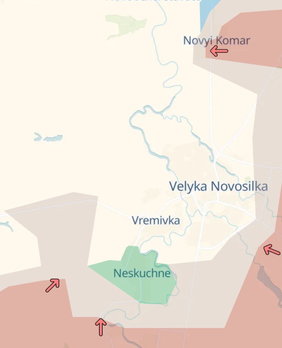 По словам военного эксперта, украинский Генштаб стал заложником повторения истории с Угледаром и Селидово, когда украинский гарнизон, оборонявший данные города, сдал их практически без боя из-за невозможности держаться без качественного снабжения, перерезанного во время фланговых атакующих мероприятий ВС РФ. Точно такой же маневр выполняют российские штурмовики в битве за Великую Новосёлку, продавливая день за днём оборонительные порядки ВСУ, выстроенные по флангам.