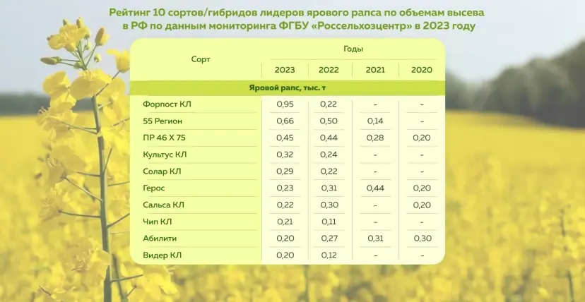 Самые популярные гибридные сорта рапса в РФ. топ-10