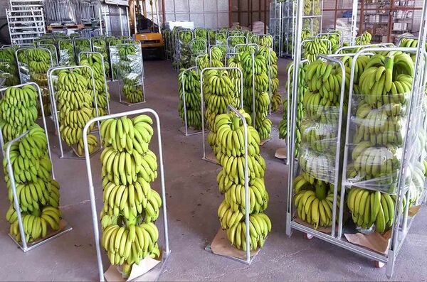 Процедура газации бананов. В качестве фитогормона используется газ этилен.