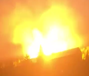Телеграм-канал "Украина.ру" разместил кадры, снятые в населённом пункте Великий Бурлук Купянского района Харьковской области, где российский барражирующий боеприпас БПЛА "Герань-2" предельно точно попал в место расположения иностранных наёмников на территории Украины.