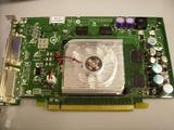 На карте установлена память производства Samsung с временем выборки 1,4нс. Рива тюнер рапортует о том, что на карте установлен чип NV43 с 4 пиксельными и 3 вершинными процессорами. Частоты по умолчанию: Чип - 360МГц, память 800МГц (1600 DDR).