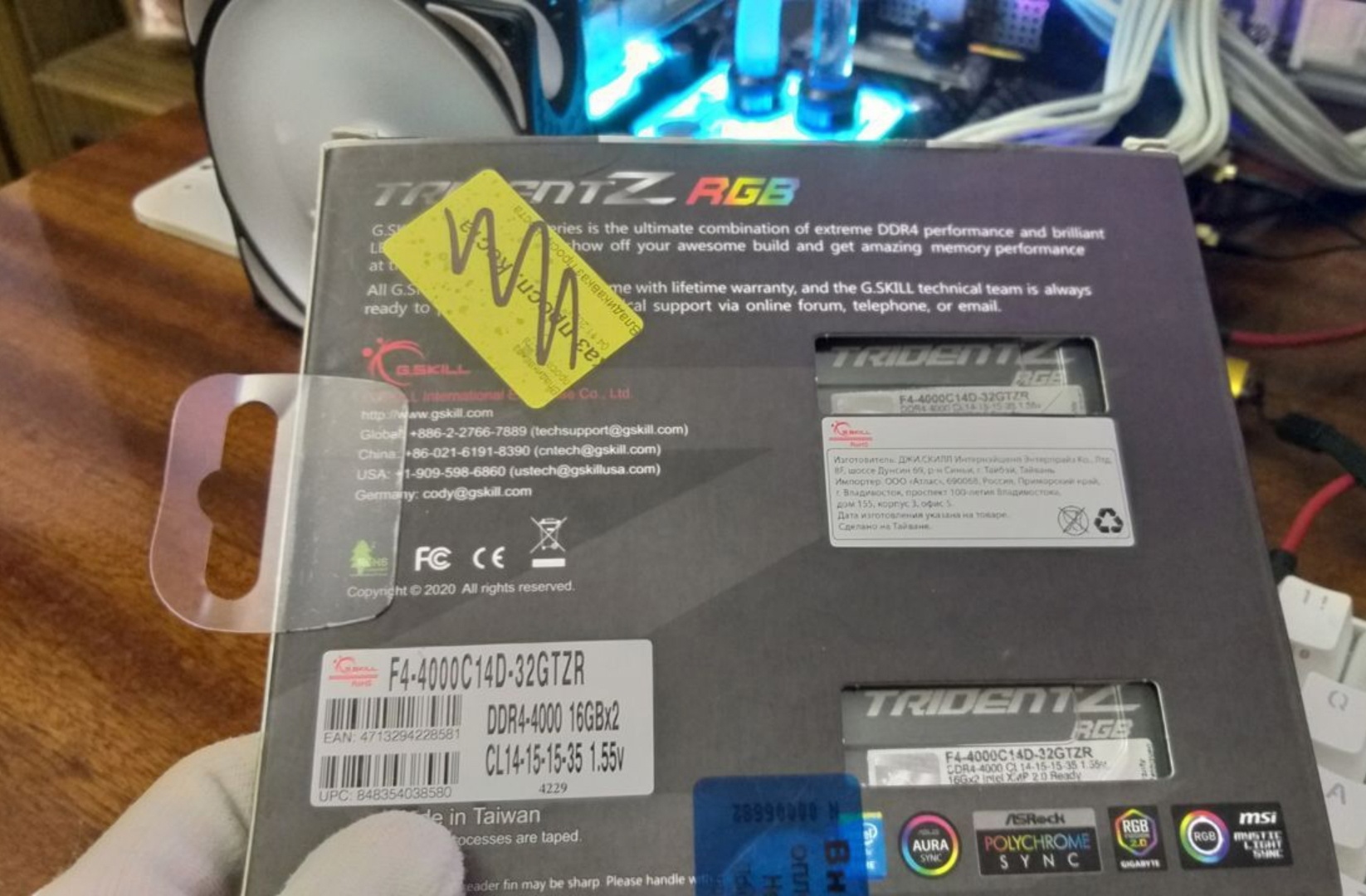 - Описание ОЗУ G.Skill F4-4000C14D-32GTZR