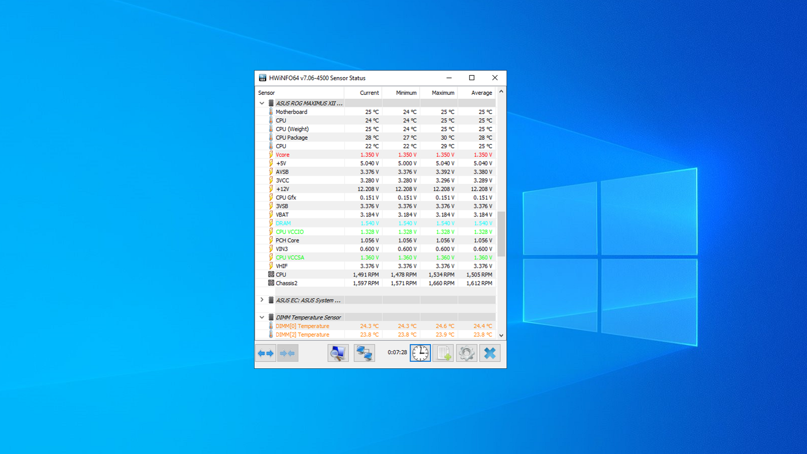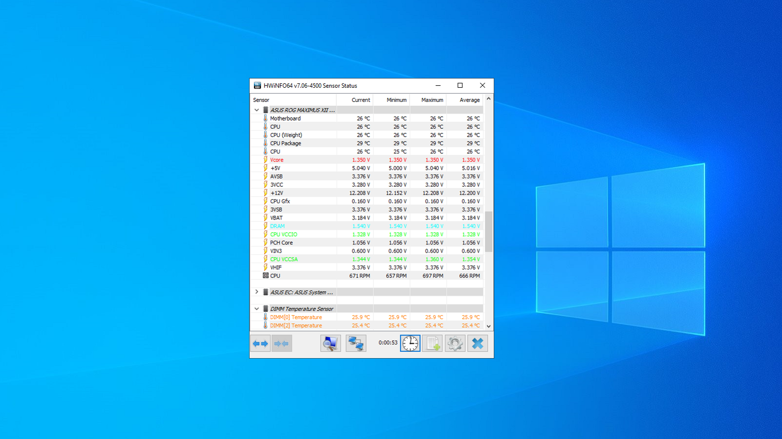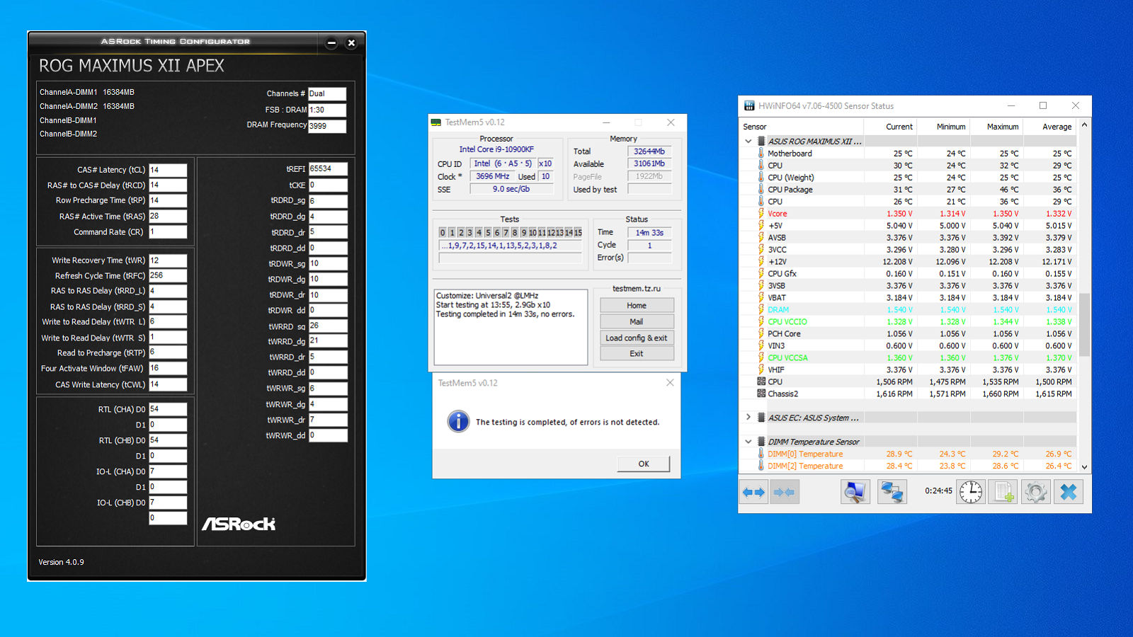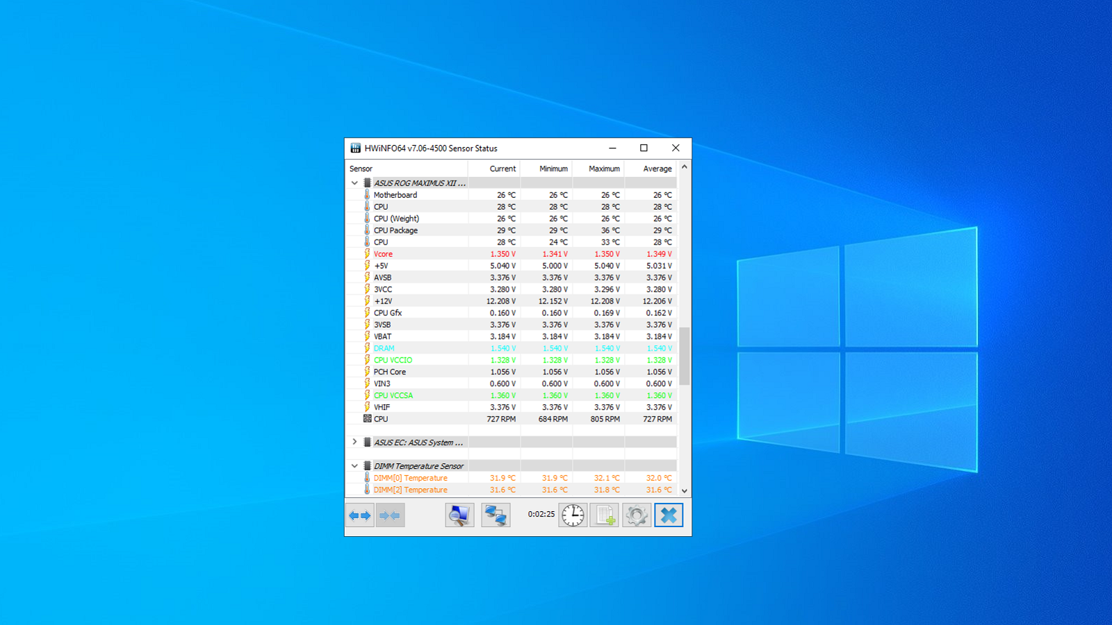 Получаем среднюю температуру 25.7 °C. Затем устанавливаем водоблок на "переобутые" планки памяти (между водоблоком и радиаторами расположена термопаста Noctua NT-H1) и получаем следующие результаты: