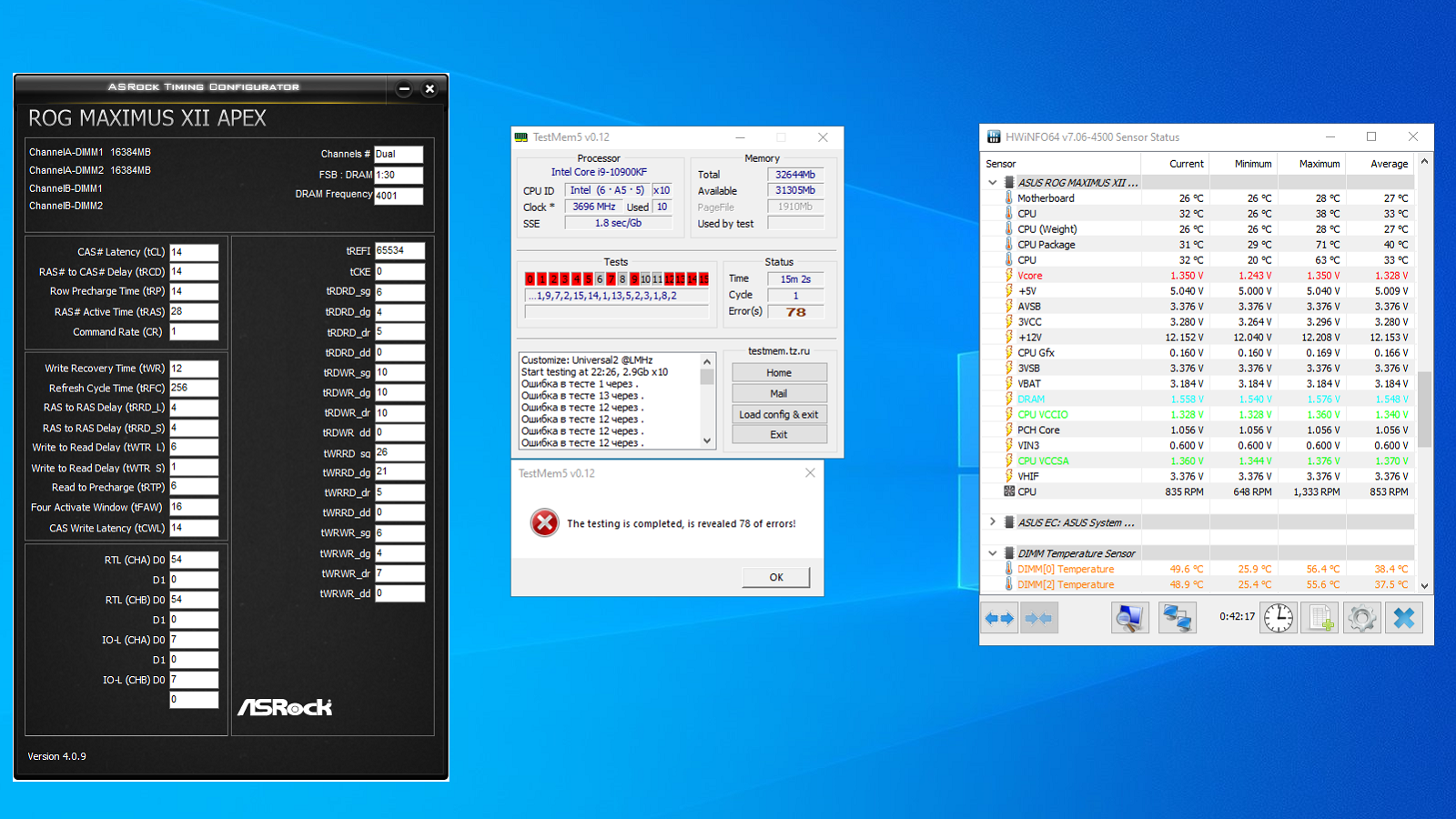 Для тестирования используется программа TestMem5 с профилем Universal2 @LMHz.