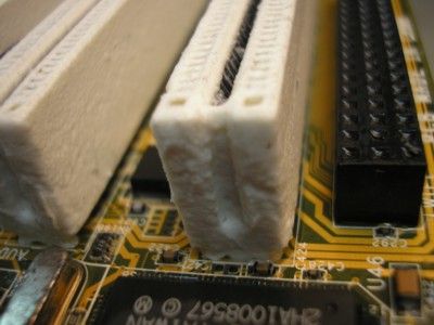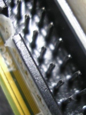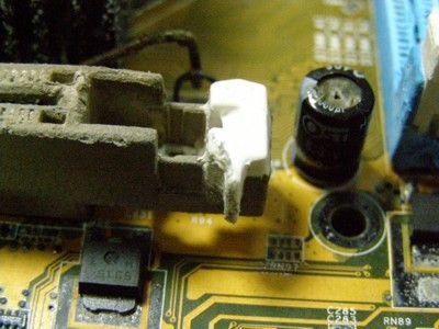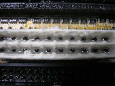 Но участь слотов расширения просто меркнет в сравнении с судьбой разъемов питания! Их просто не стало!((( Пожалуй имея в запасе большее количество кислоты, мы все таки смогли бы стереть и вовсе эти разъемы.