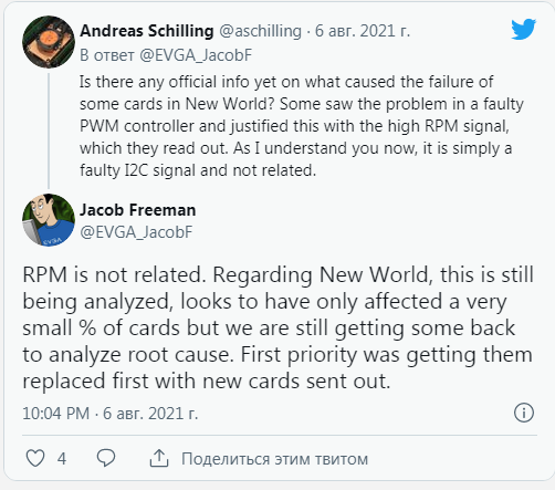 Сама Amazon очень быстро отреагировала на трагические известия и сначала опубликовала рекомендации по устранению недостатка, а затем выпустила специальный патч, полностью устраняющий проблему. Компания EVGA, славящаяся заботой о пользователях, пообещала бесплатно заменить все пострадавшие от New World видеокарты RTX 3090 её производства, одновременно начав работать над поиском причин и устранением последствий.