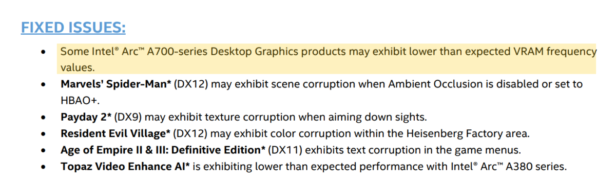 Всем владельцам видеокарт Arc A770 16 ГБ компания рекомендует установить новый драйвер с исправлениями.