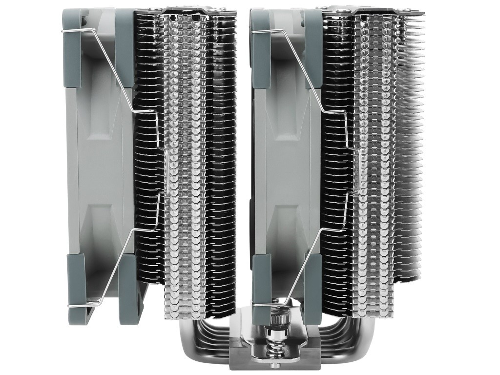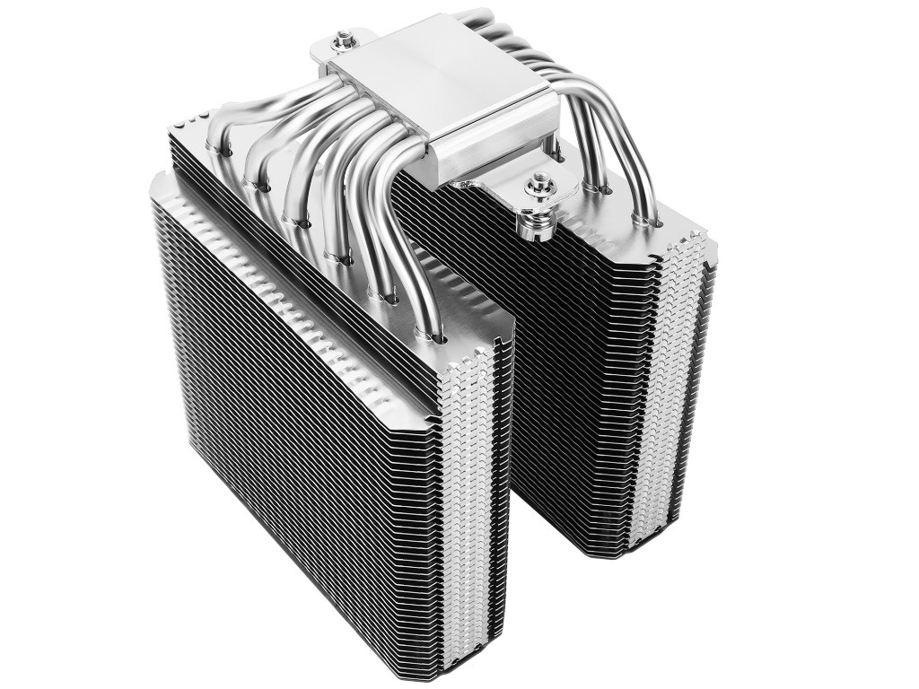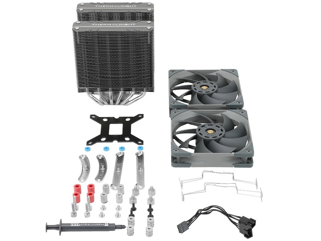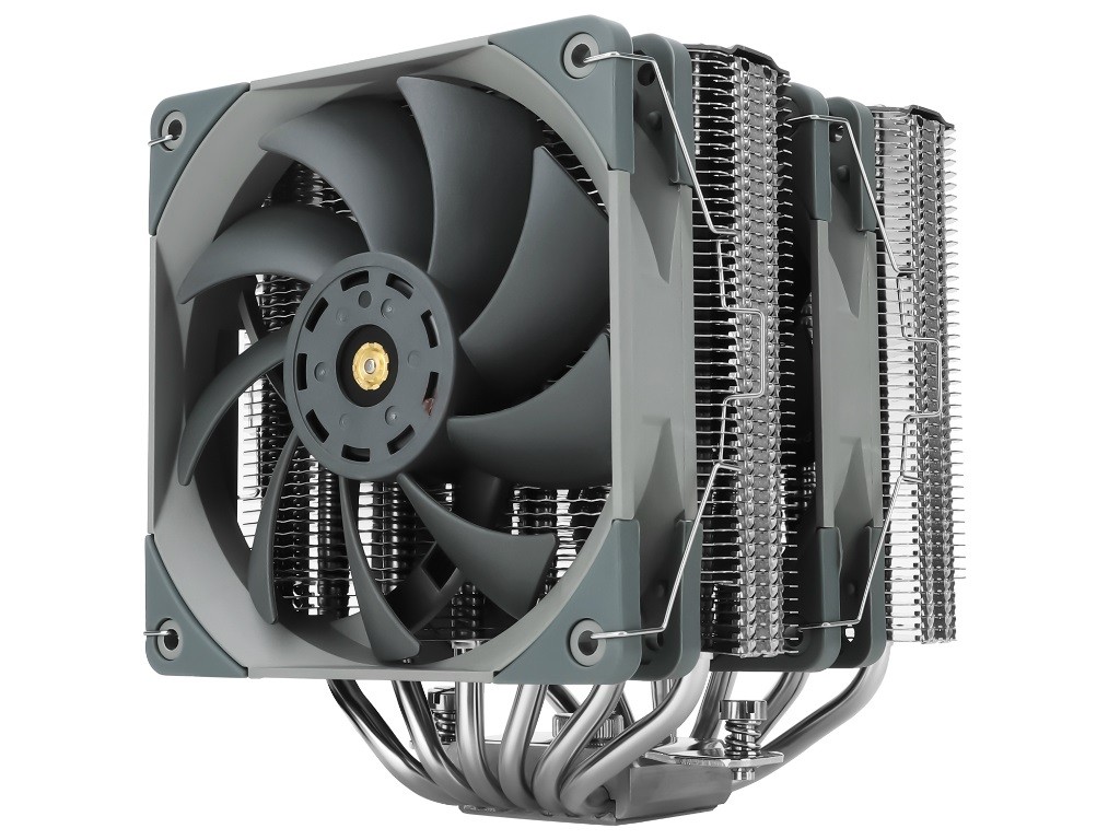 Новый продукт использует двухбашенную конструкцию с шестью тепловыми трубками диаметром 6 мм. Основание кулера для защиты от короззи и окисления выполнено из никелированной меди класса C1100, обладающей высокой теплопроводностью. За обдув отвечают два высокопроизводительных 120 мм вентилятора TL-C12 PRO-G с максимальной скоростью вращения 1850 об/мин. Они базируются на S-FDB подшипниках и способны прокачать до 82 кубических футов в минуту, при уровне шума 29,6 дБА. Для подключения используется 4 -контактный разъем питания с ШИМ-управлением.