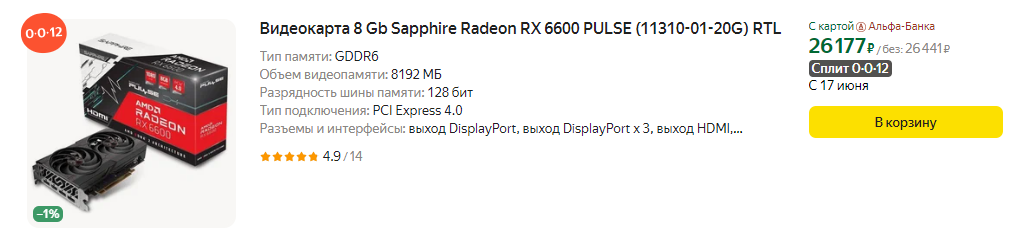 Поэтому путеводитель по лучшим игровым видеокартам на лето 2024 года может помочь в этом деле. И согласно ему минимальным вариантом для самого бюджетного геймерского ПК является Radeon RX 6600, ценой примерно в $200.