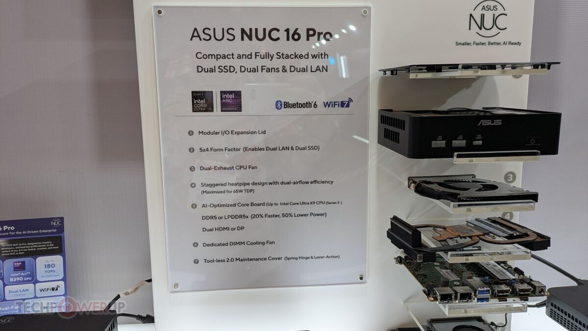 Для увеличения производительности и энергоэффективности в NUC 16 Pro производитель перешел на использование памяти LPDDR5X. Учитывая поддержку Core Ultra X7 и X9 Series 3 RAM с частотой до 9600 МТ/с, можно предположить, что ASUS оснастила новую линейку модулями высокого класса.