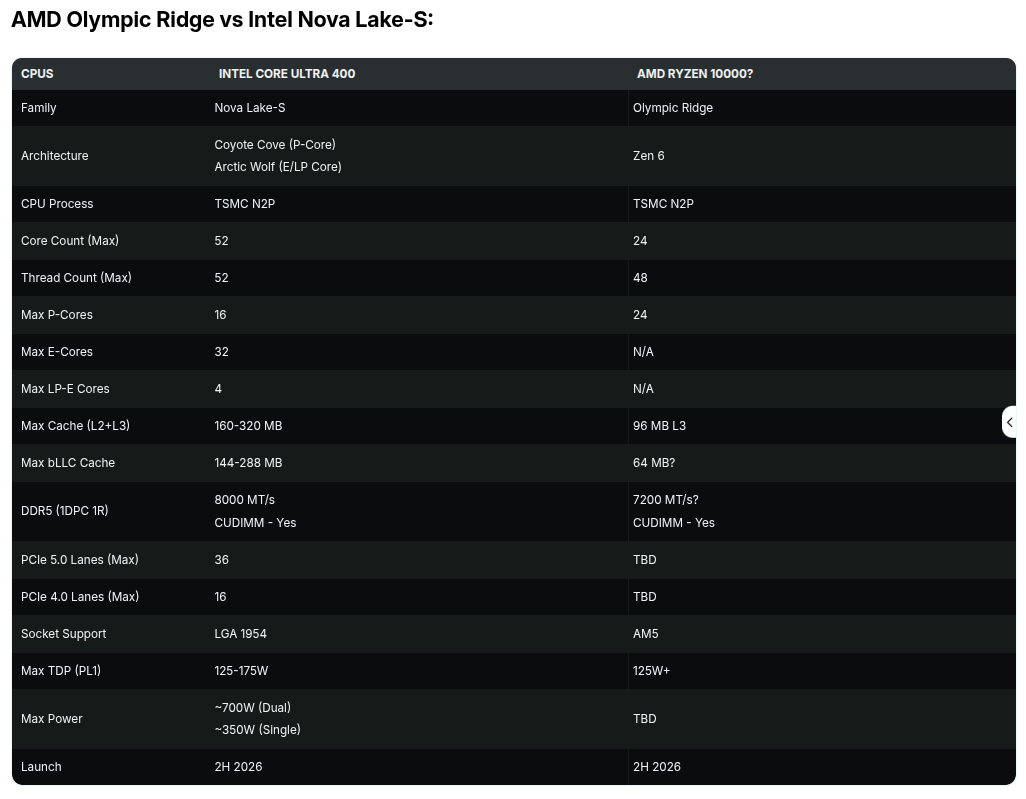 Рост количества ядер в Zen 6 объясняется будущим соперничеством с Nova Lake-S. Конечно, прямого ответа на 52-ядерный флагман Intel "красный" лагерь не предложит, да и не должен, учитывая разный уровень TDP и стоимости процессоров. Но с точки зрения ценового позиционирования, идентичного Zen 5, новинки будут конкурентоспособными.