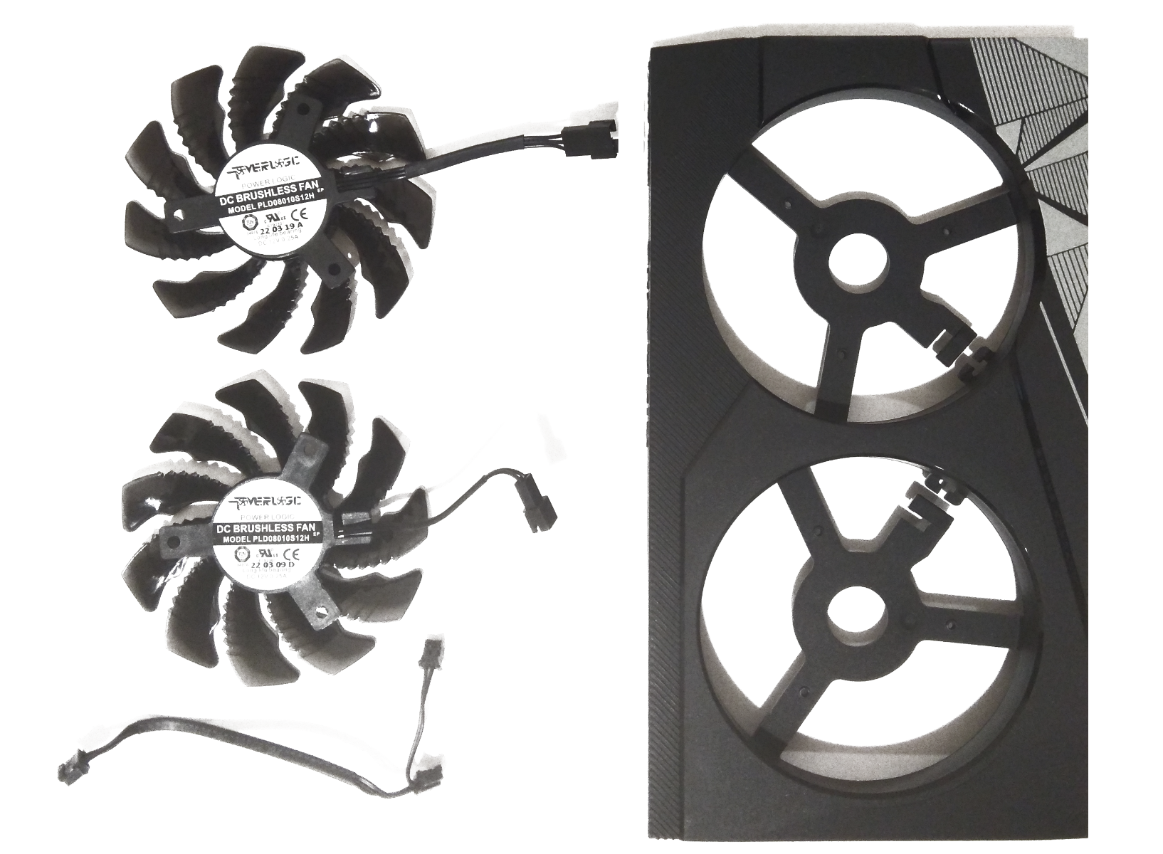 Пластиковый кожух рассматриваемого образца содержит посадочные места для двух 12-вольтовых вентиляторов Powelogic PLD08010S12H с током 0,25 А, объединенных трехпиновым удлинителем. Вентиляторы съемные, крепятся на трех винтах, что позволяет в случае поломки их заменить.