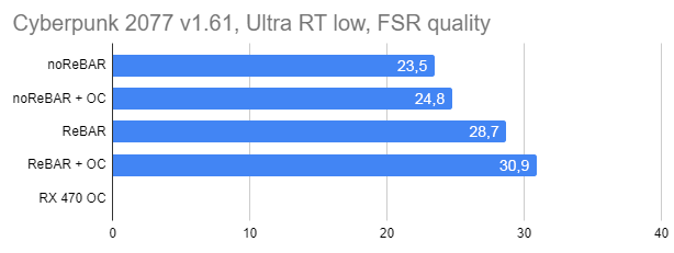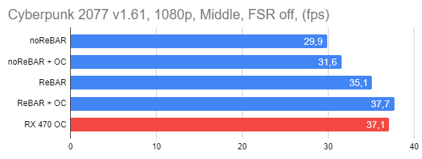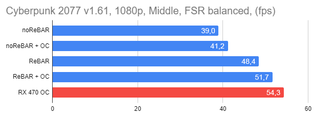 Как результат — тотальное доминирование RX 470 над новинкой, несмотря на то, что в первой части исследования складывалось впечатление, что перед нами более-менее равные по силе соперники. Задействовав Resizable BAR и оверклокерские возможности Arc A380, можно, в лучшем случае, добиться 42%-ного падения фреймрейта.