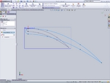 Создайте с помощью сплайнов и элемента "дуга по трем точкам" сечение одной лопасти вентилятора на виде "спереди".