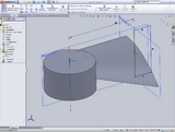 Теперь создайте эскиз на вспомогательной плоскости и вставьте эти элементы. После чего переместите их, используя для привязки ту же точку сплайна, что использовалась для создания осевой линии.