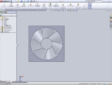 Создайте ещё две детали - корпус вентилятора, если нужен, и "объем вращения" - элемент, либо созданный из окружности либо объект вращения, который укажет FS какие области детали будут вращаться.