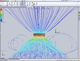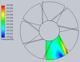 По результатам расчета можно построить как схему воздушных потоков, так и сечения по плоскостям или, к примеру, посмотреть распределение давлений по кромке лопасти.