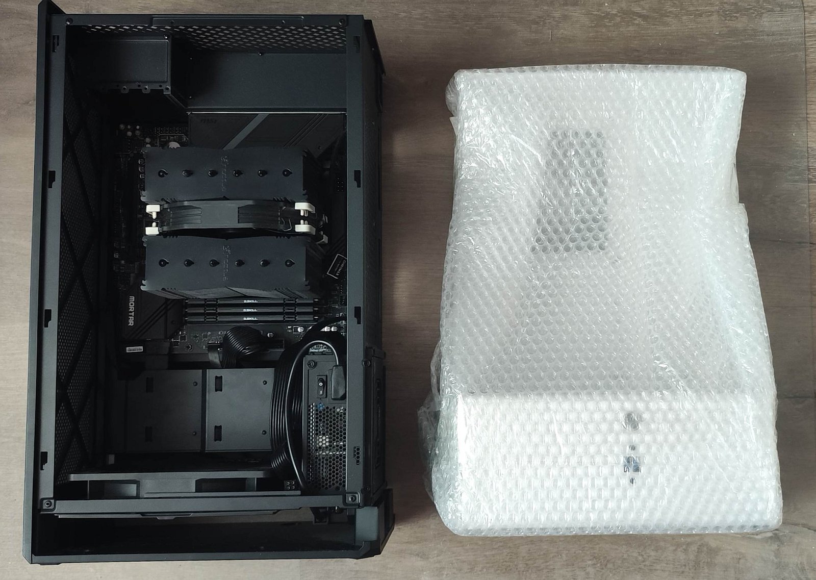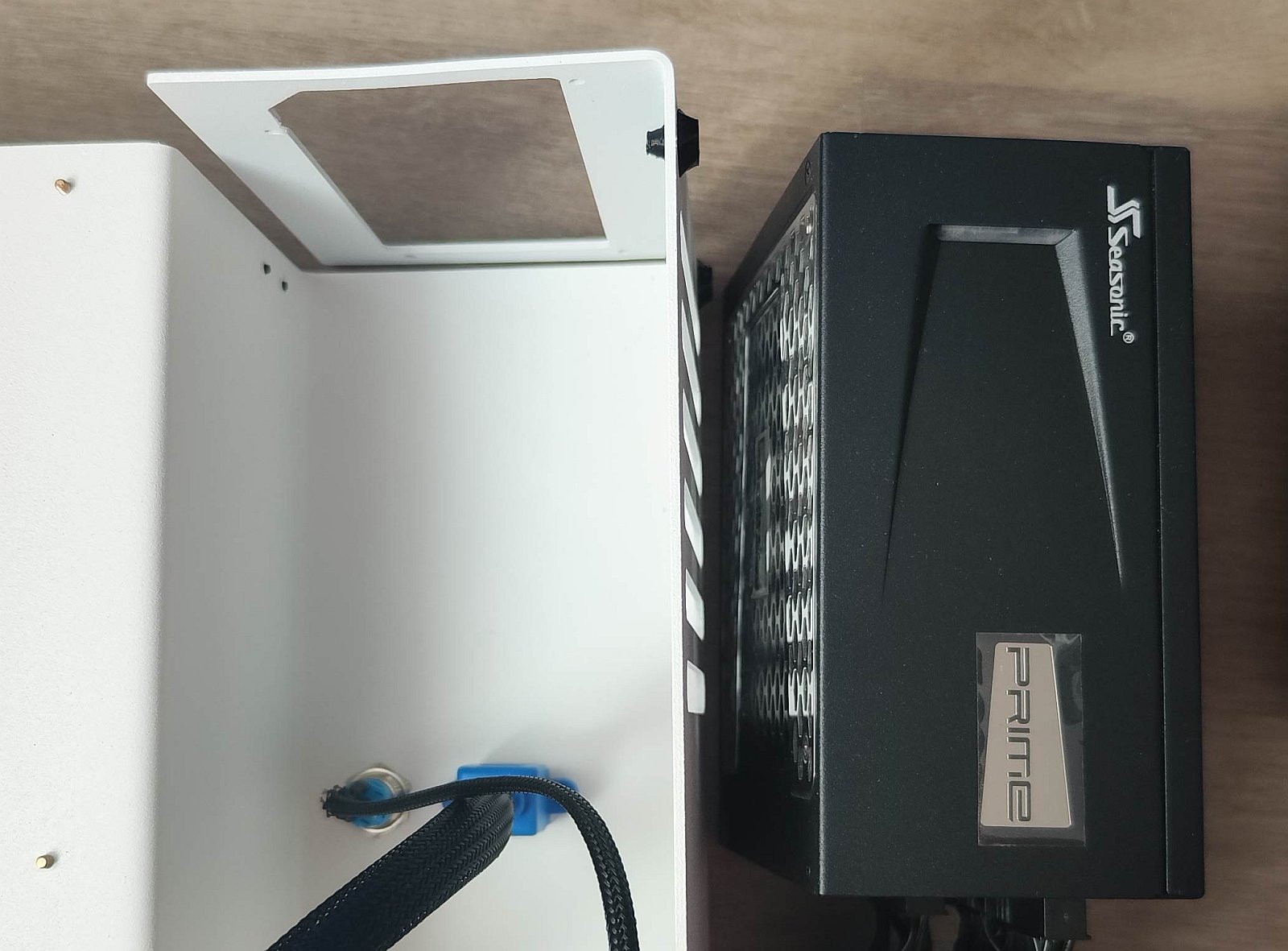 Приложил рядом блок питания Seasoniс TX-850. Данный БП в длину 17 см и без снятия разъёмов из корпуса в корпус не войдёт.