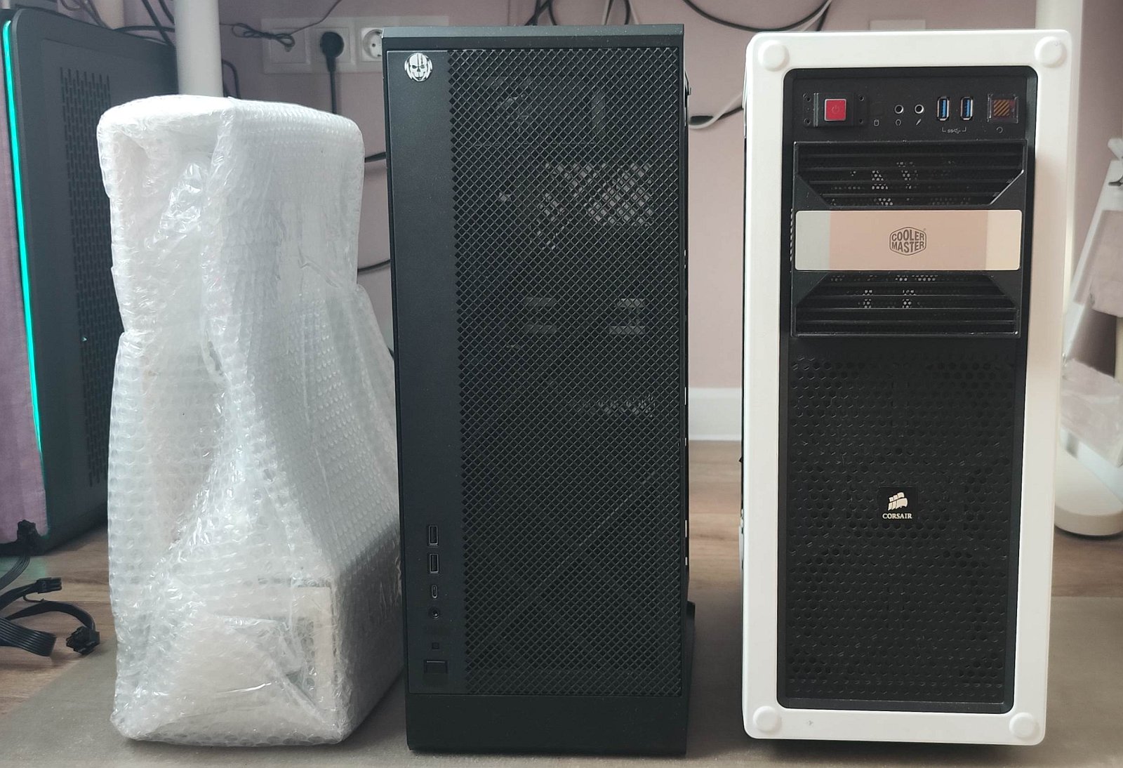 Корпус SS Prise (справа, пока в упаковке) в сравнении с корпусами SilverStone ALTA G1M (в центре) и Corsair Vengeance C70 (справа):