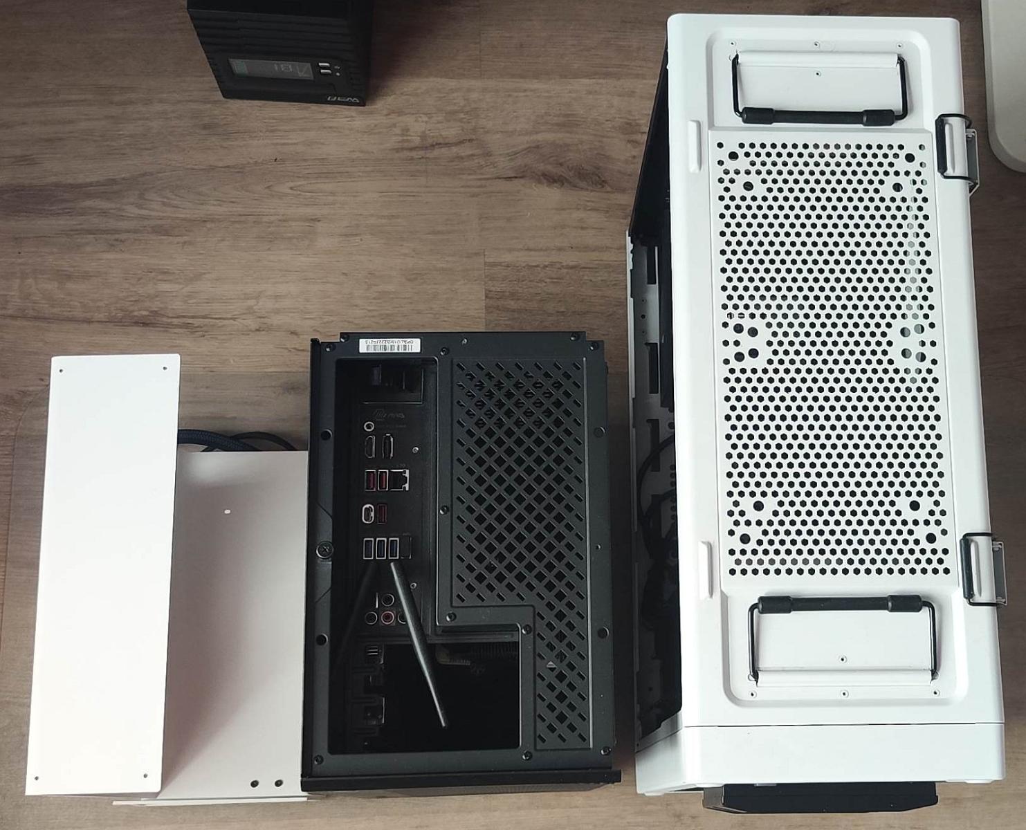 Корпус SS Prise (справа, пока в упаковке), в сравнении с компактным корпусом SilverStone ALTA G1M (слева):