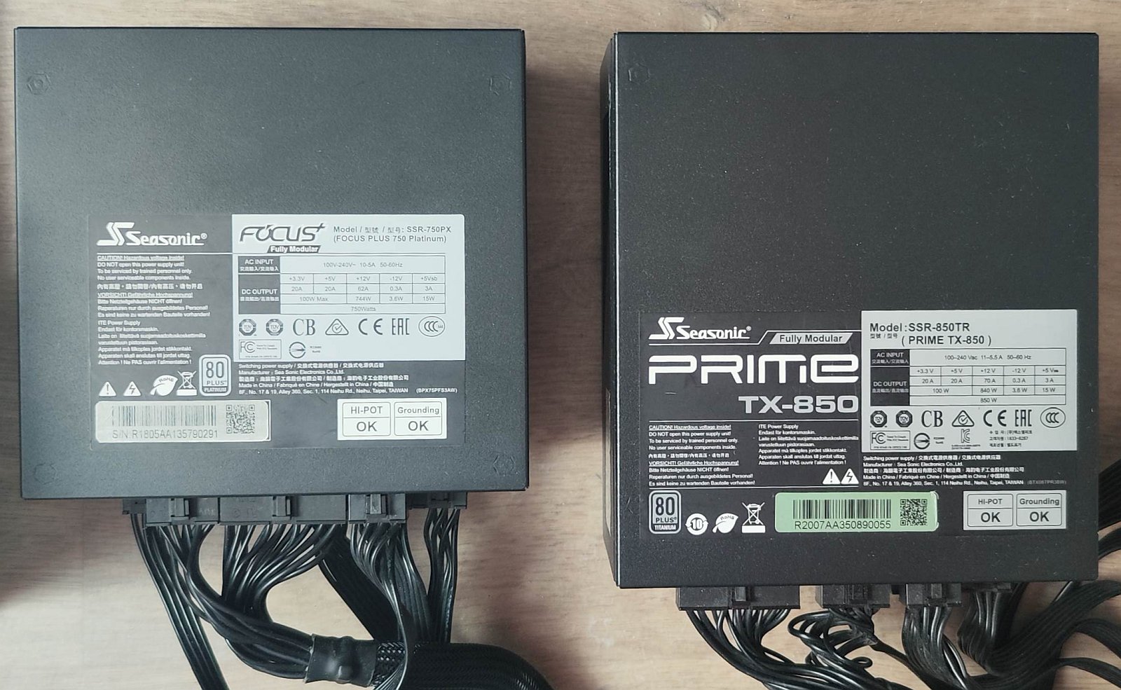 Для сравнения, Seasoniс TX-850 длиной 17 см (справа) рядом с более компактным Seasonic Focus 750 Platinum длиной 14 см.
