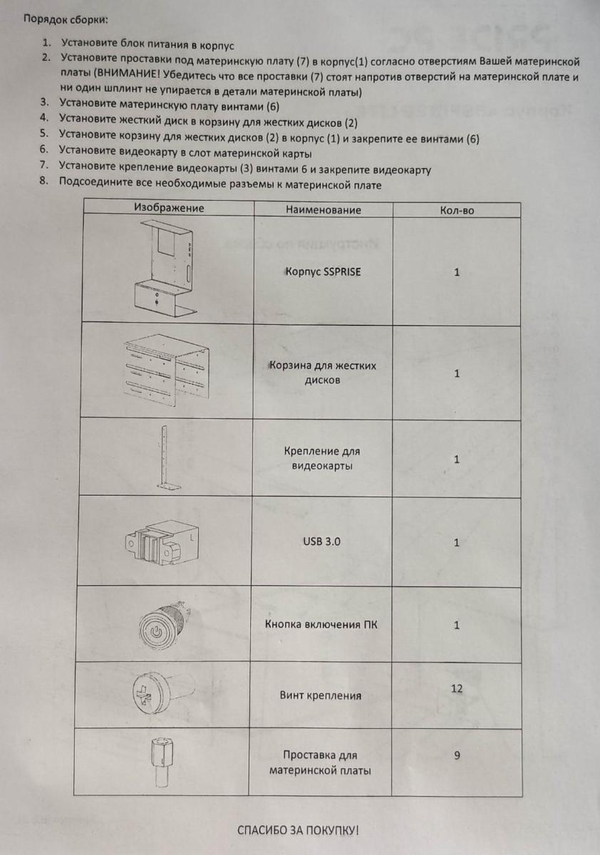 P.S. Инструкция к корпусу SS Prise.