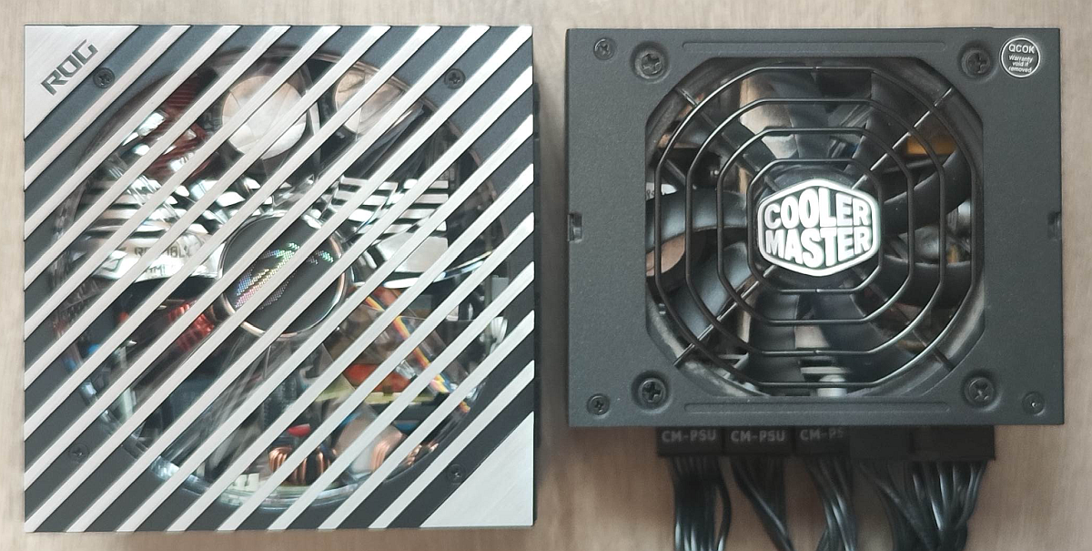 Поэтому в ноябре 2023-го, для нормального электропитания 4090-ой, я решил приобрести более мощный блок питания, по сравнению с имевшимся у меня Cooler Master V850 SFX GOLD. Таким БП стал платиновый ASUS 1000W ROG-LOKI-1000P-SFX-LGAMING с требуемым для 4090 разъемом питания 12VHPWR.