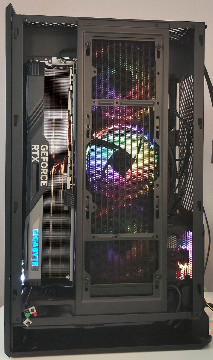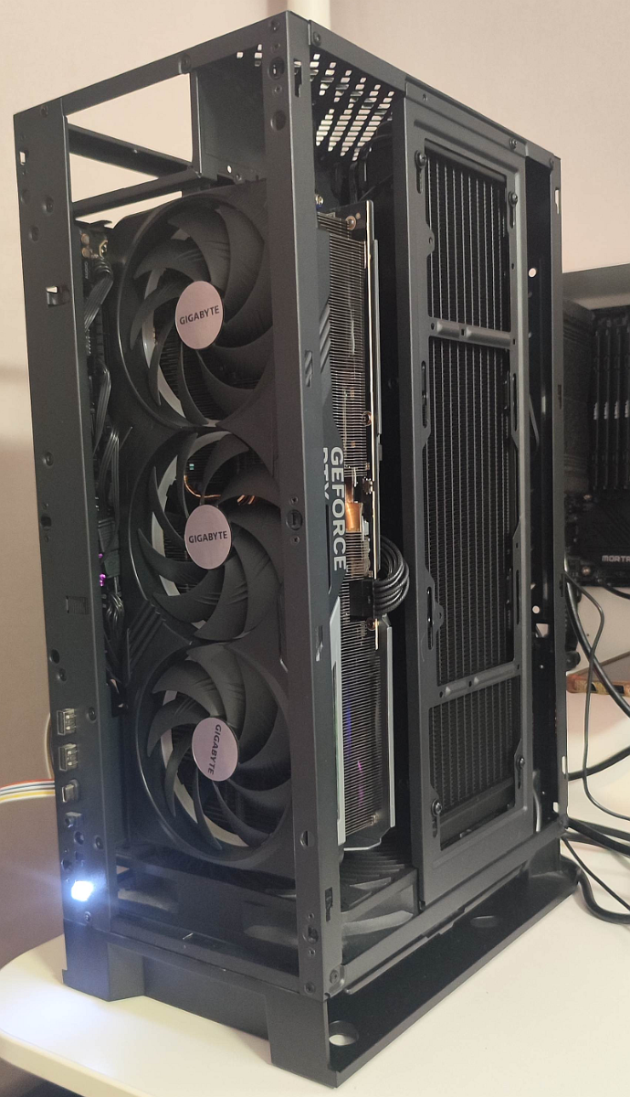 В прошлом году я пытался собрать в компактном корпусе SilverStone ALTA G1M сборку из AMD Ryzen 9 7950X, 192 ГБ ОЗУ и 4090. Тогда мне не удалось это сделать, потому что с материнской платой MSI B650M Mortar Wi-Fi видеокарта Gigabyte 4090 GamingOC не помещалась в корпусе.