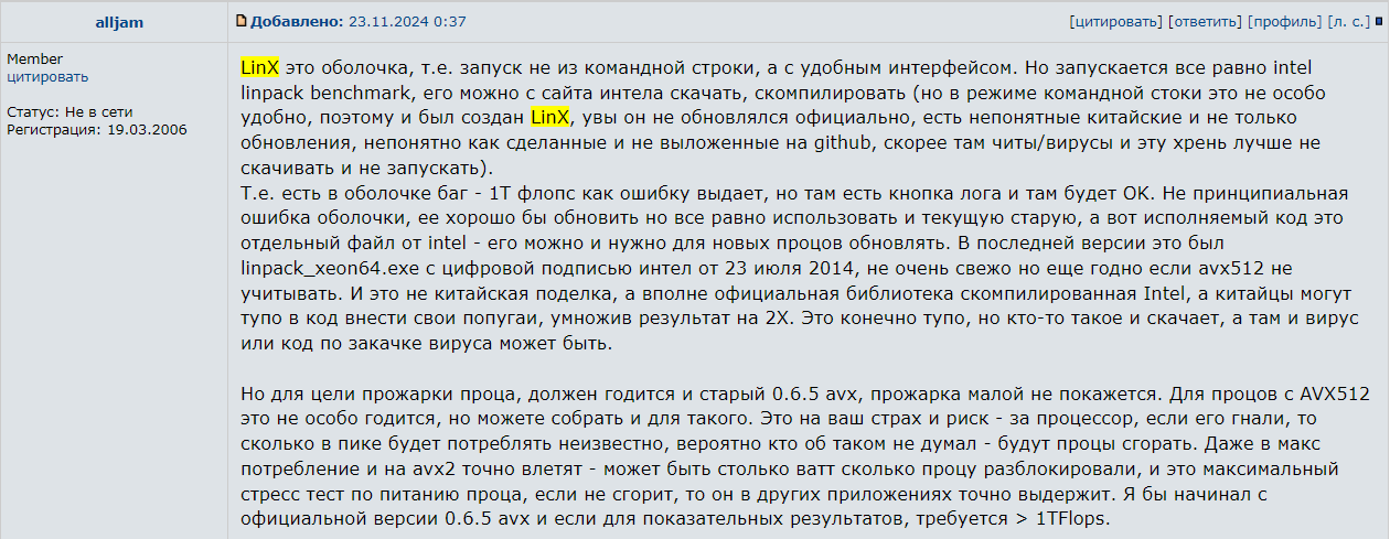 Теперь мне надо пересмотреть свою методику проверки стабильности разгона с учётом особенностей LinX.