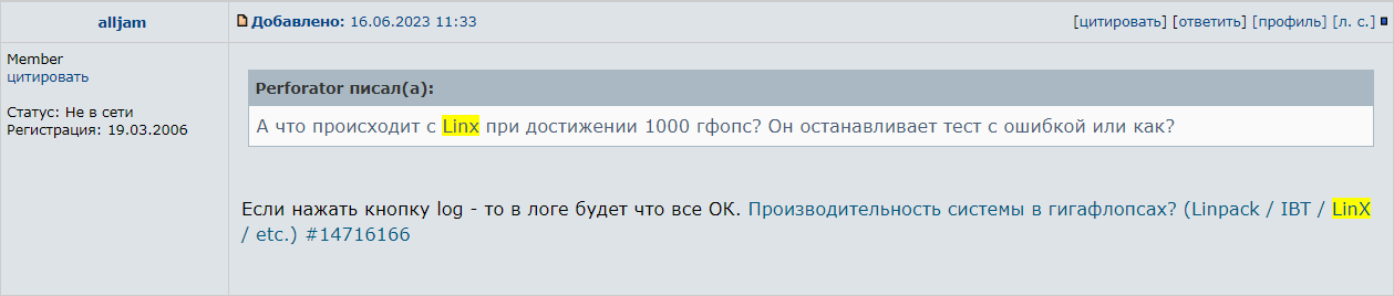 3. LinX ограниченно подходит для тестов современных систем, производительность которых превышает 1000 GFlops (надо смотреть содержимое лога).