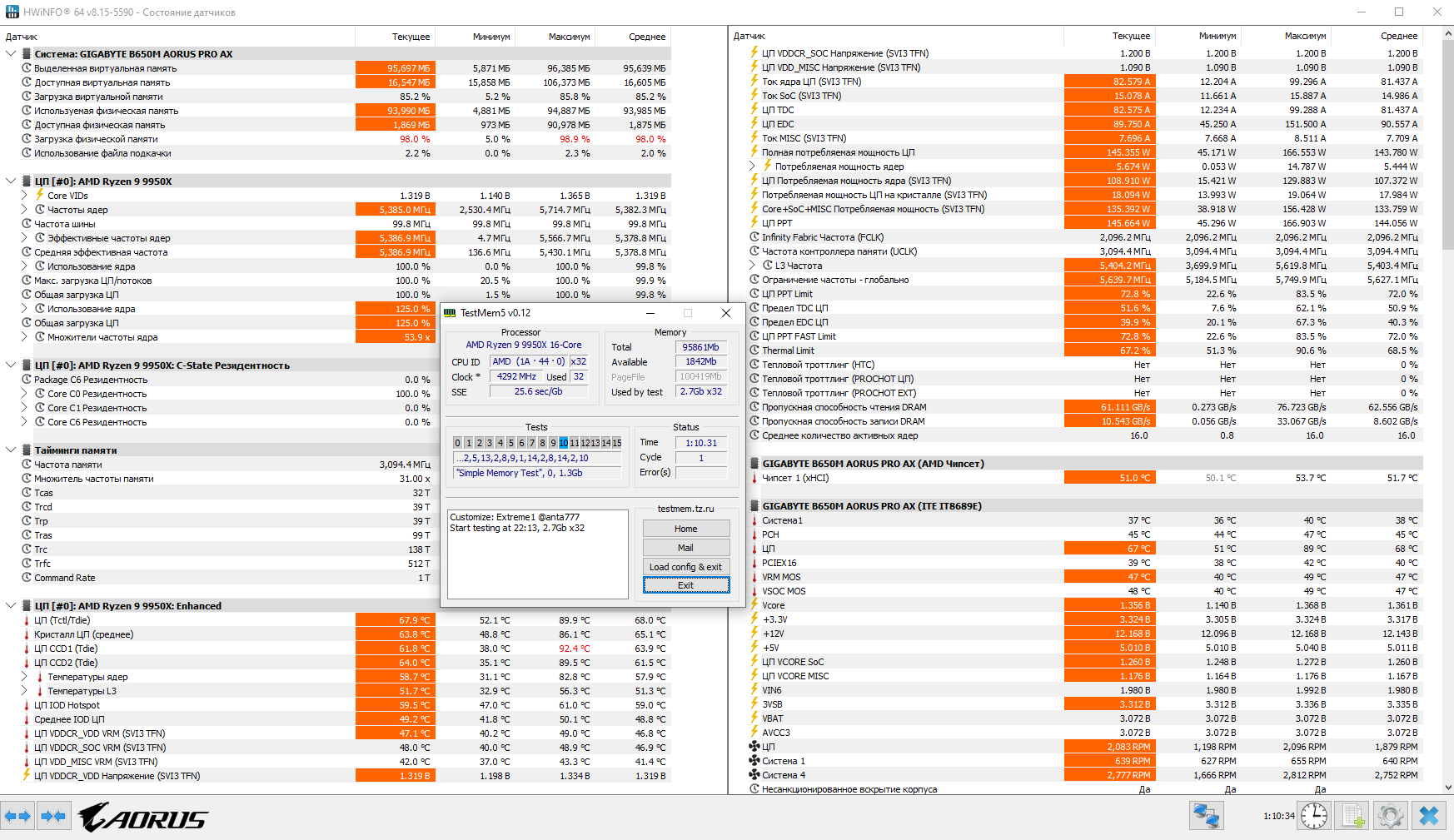 Для оценки стабильности работы системы я также запустил TestMem5 v12 с профилем Extreme1 @anta777.