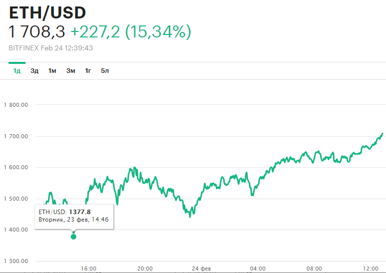| 4 | Курс Ethereum менее чем за сутки вырос на 23% - доходность майнинга находится на пиковых значениях | Очередная волна коррекции может вернуть оптимизм майнерам. Курс Ethereum менее чем за сутки вырос с 1377 USD до 1708 USD. | 24 февраля 2021 |