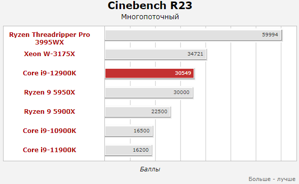 Преимущество Intel 12900K в многопоточной нагрузке уже не так однозначно