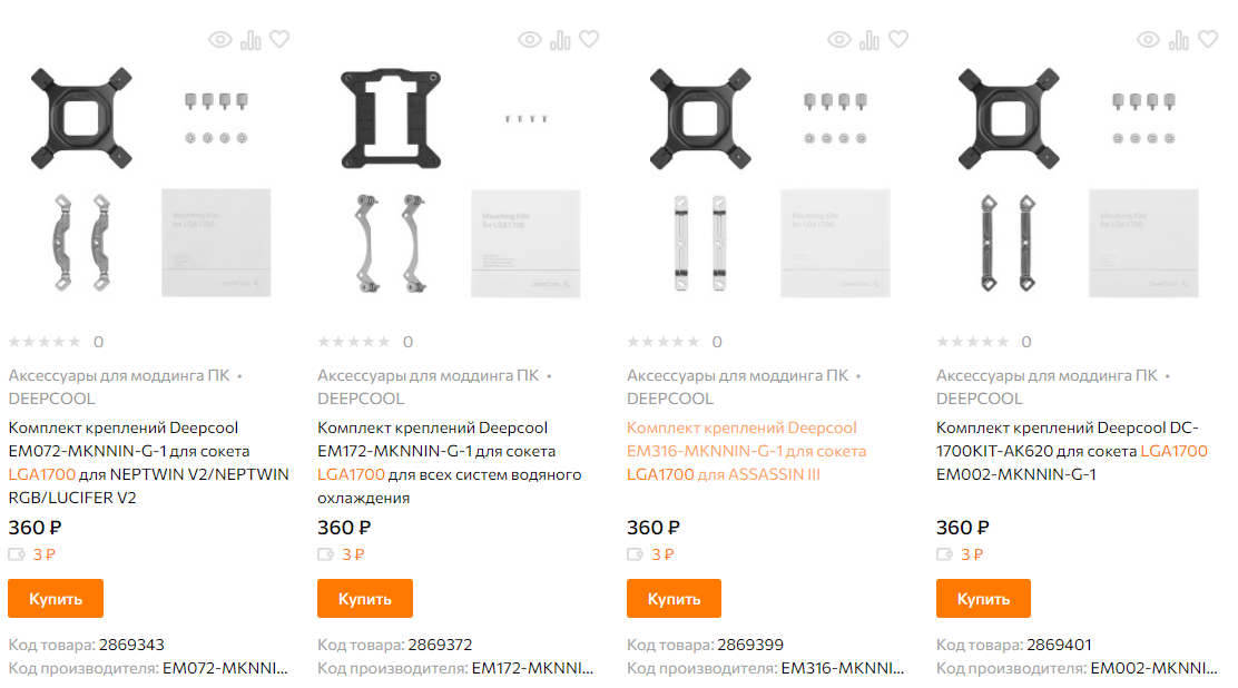 Также сегодня можно заказать крепление для кулера под LGA1700 и сам кулер.