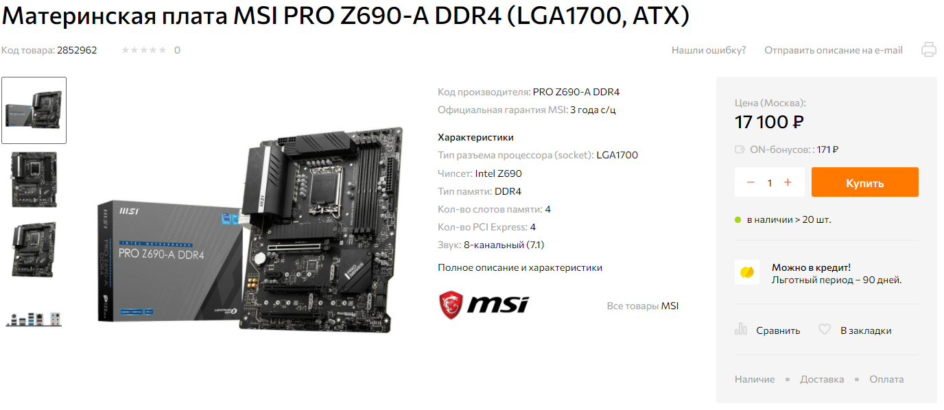 Самая доступная плата для Intel 12900K из доступных к заказу