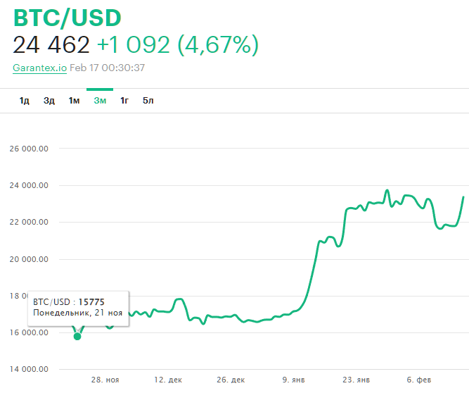 А курс биткоина по отношению к доллару за этот же квартал вырос на 55%.