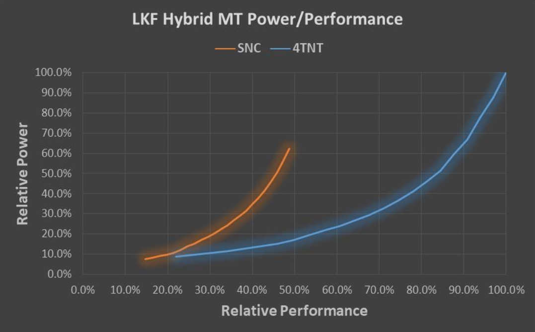 При нагрузках, имеющих преимущественно однопоточный характер, предпочтительным является использование «малого» ядра Atom в том случае, если максимальная производительность не требуется и «большого» ядра Core в обратной ситуации. Конкретный уровень однопоточной нагрузки, когда выгоднее переключиться с «малого» на «большое» ядро зависит от непосредственно используемых ядер. Так, если «большое» ядро Core основано на актуальной архитектуре Sunny Cove, а «малое» ядро Atom — на актуальной же архитектуре Tremont, то граница, после которой выгоднее задействовать «большое» ядро лежит вблизи 60% от производительности «большого» ядра. Обратите также внимание, что «малые» ядра Intel не так уж и «малы» — ядро Tremont способно выдавать чуть меньше 70% максимальной производительности ядра Sunny Cove, а это уже, между прочим, уровень производительности где-то посередине между старыми-добрыми Sandy Bridge и Haswell.