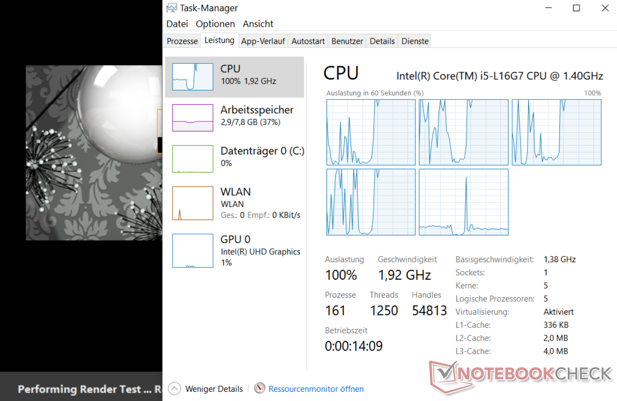 Да, в Windows уже имеется поддержка гетерогенной архитектуры big.LITTLE от ARM на уровне планировщика, но она появилась сравнительно недавно, да и оптимизирована была, по всей видимости, преимущественно для симметричного дизайна 4+4. Так что можно ожидать, что у Intel и Microsoft уйдёт какое-то время на доведение планировщика для Lakefield «до ума» и первые тесты подтверждают некоторые опасения — ожидать максимально эффективную реализацию планировщика сразу не стоит. Вот так, например, по результатам тестов Samsung Galaxy Book S на Core i5-L16G7, проведённых порталом Notebookcheck, выглядит загрузка ядер Lakefield в многопоточном тесте Cinebench: