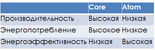На не самых сложных задачах энергоэффективность Atom действительно выше, однако, ядра дизайна Atom зачастую попросту не способны выдать производительность уровня ядер дизайна Core, либо могут потребовать для выполнения сложных задач уже больше энергии, чем Core. Для того чтобы взять лучшее из обоих миров, инженерами Intel было принято решение объединить одно ядро дизайна Core с четырьмя ядрами дизайна Atom на одном кристалле. Такое сочетание «большого» высокопроизводительного и «малых» энергоэффективных ядер будет работать разным образом в зависимости от характера нагрузки.